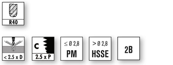 DIN371/DIN376. Ikke-belagt spiral snittap i HSSE. Til bundhuller. Snitdybde <2,5xD.