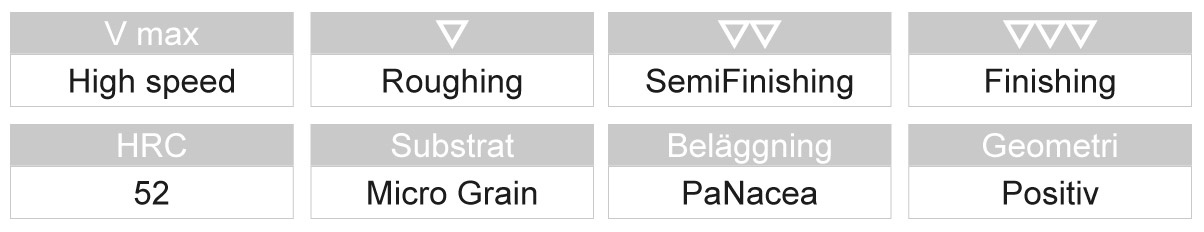 Den friktions koefficiente PaNacea belægning gør det muligt at opnå ekstremt fine overflader og samtidig have en god standtid på værktøjet.