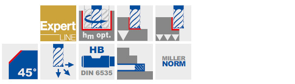 Belagt ECU-hårdmetal endefræser udviklet til trokoide (dynamisk) fræsning. Differentialdelte skær, MF3-belægning og et skær ind til centrum. Anvendelsesområdet er først og fremmest stål, men fungerer også i rustfrit stål og ikke-jernmetaller. Med weldon hals.