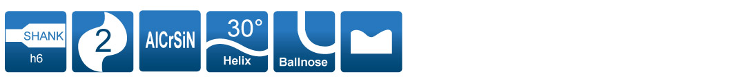 7 mm. 2-skærs belagt radius fræser i hårdmetal for fræsning op til 48 HRC.