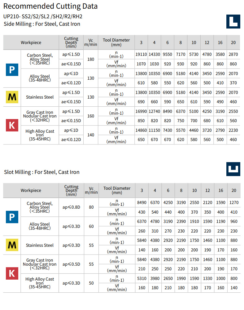 | Bearbejdningsmateriale | P - Stål, M - Rustfri stål, K - Støbejern |